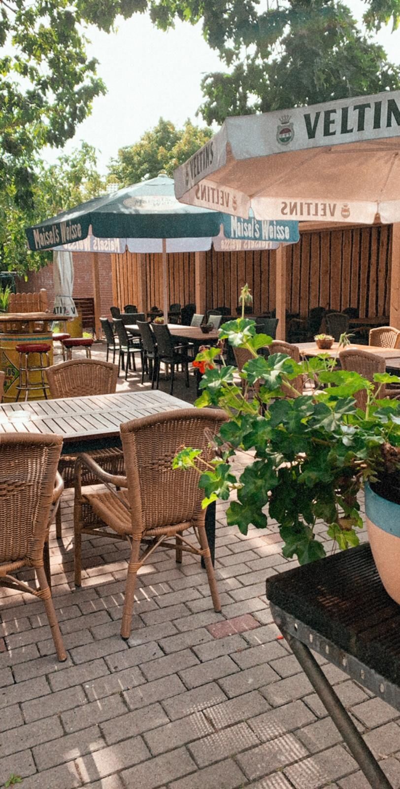 Bei gutem Wetter laden wir Sie ein in unserem Biergarten Platz zu nehmen.